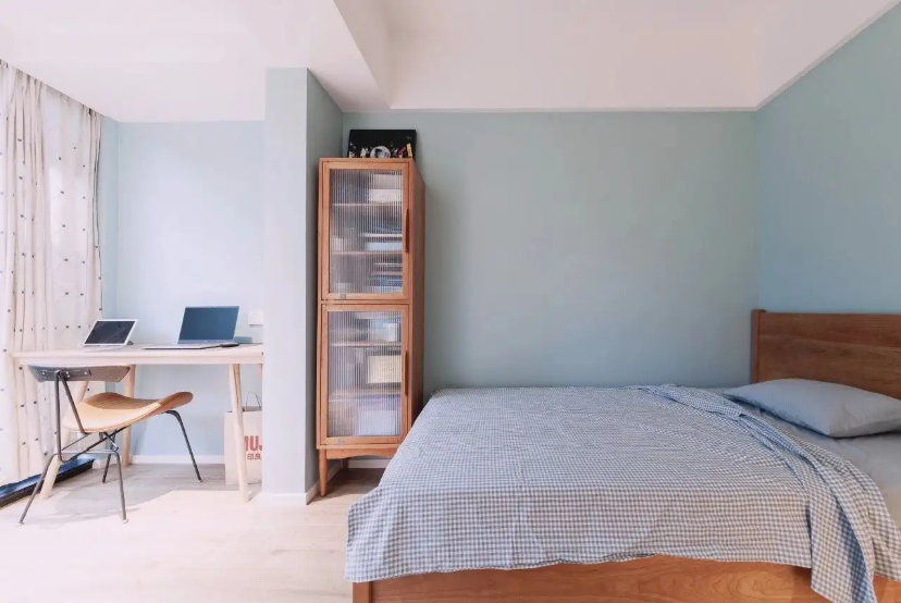 卧室里主要的家具首要必定是床,那么我们在选择床的时候就需要先考虑床的大小和卧室的大小,不管是上下床还是一张床,都需要预留出足够的区域用于平时走动。