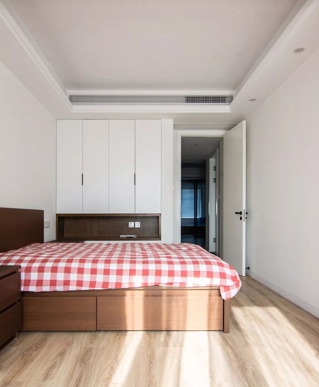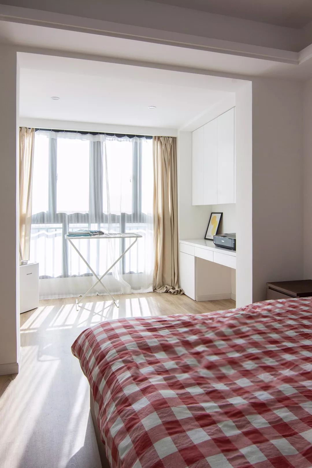 主卧室的面积非常宽敞,衣柜、床和床尾柜的结合满足了屋主的日常使用需求。床尾的柜子更是作为书桌来使用。