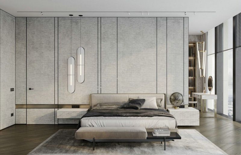 详情226㎡大平层现代简约客厅沙发背景墙装修效果图