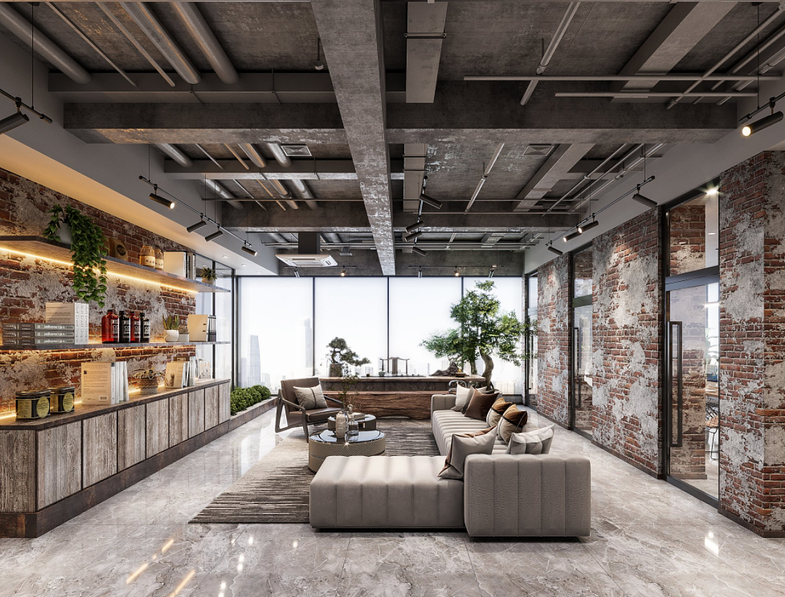 工业风办公室装修设计要点及注意事项:
