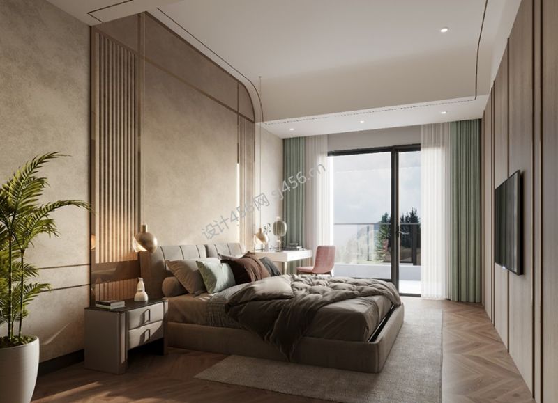 275㎡别墅轻奢风格卧室吊顶装修效果图