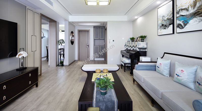 130㎡三居室新中式风格客厅装修效果图