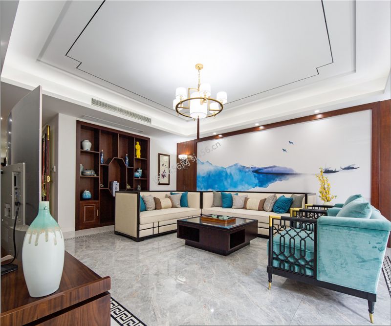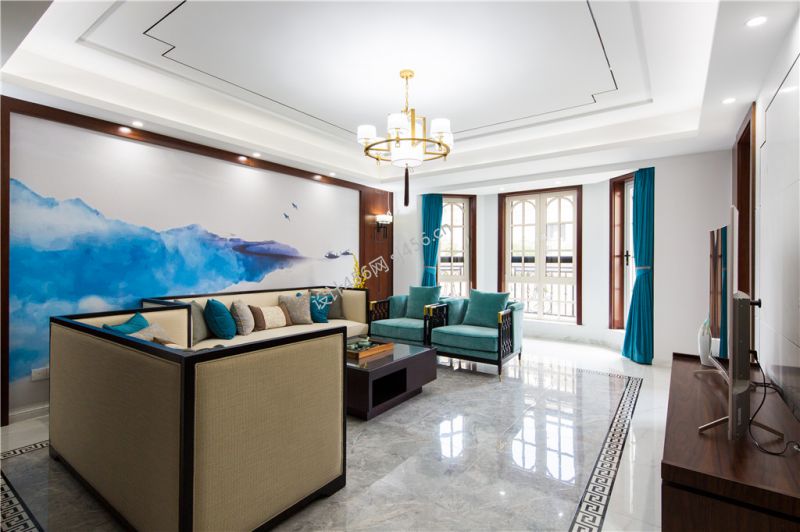 91平米三居室中式客厅吊顶效果图