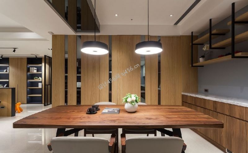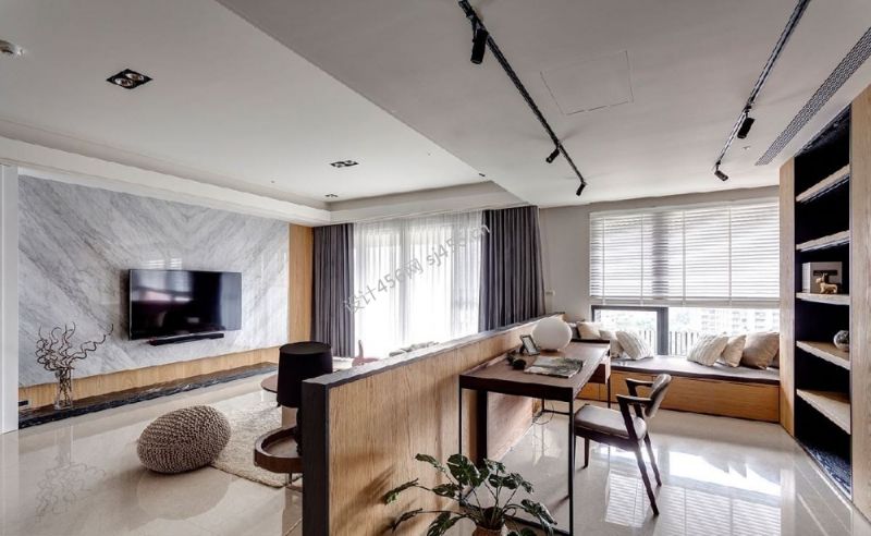 170平米现代简约风格四居室书房客厅一体装修图片