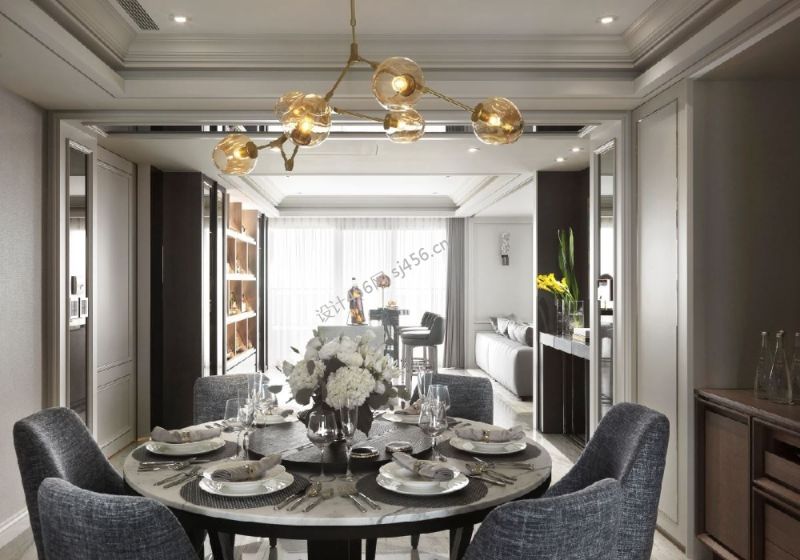 200平米大平层现代混搭风格餐厅吊灯设计实景图