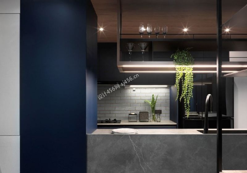165平米现代风格四居室厨房吧台隔断装修设计图
