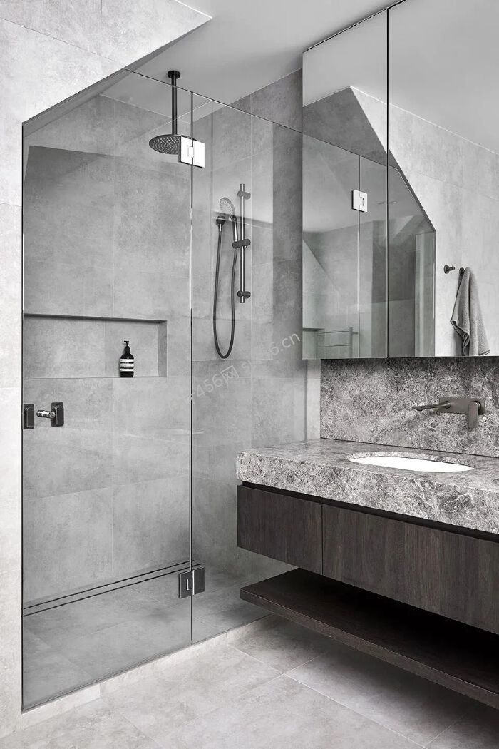 147平米现代简约三居室卫生间玻璃隔断设计图