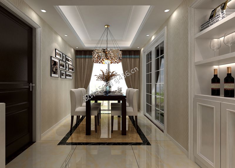 美式风格125平米三居室餐厅酒柜装修效果图