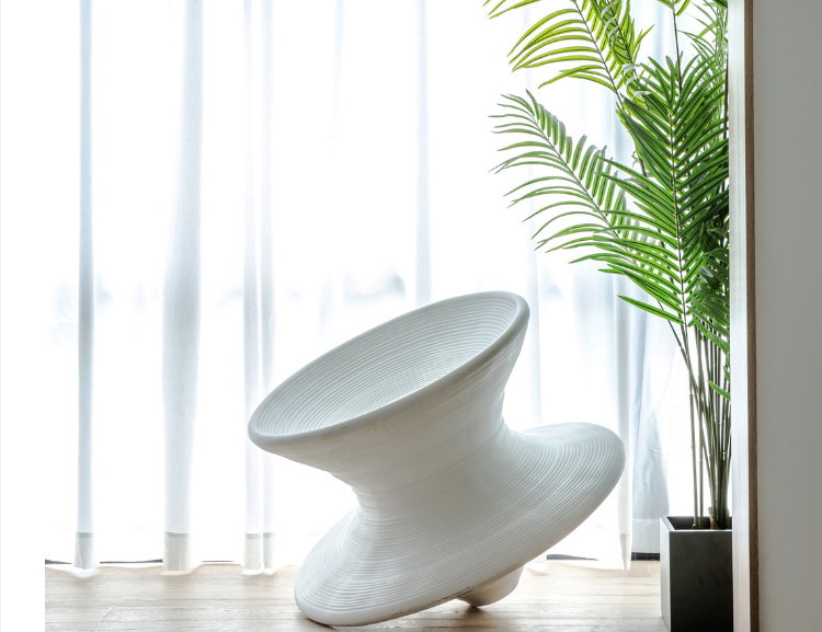 阳台纯纯的休闲空间,木地台增加了舒适性与空间温度。绿植和摇椅的布置,不负一日好时光。