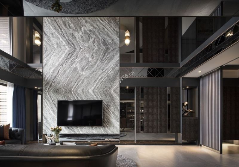 详情290平米别墅现代简约风格客厅电视墙装修案例