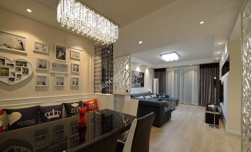 95平米现代简约风格两居室餐厅照片墙装修图片