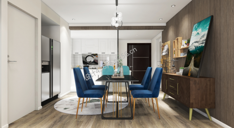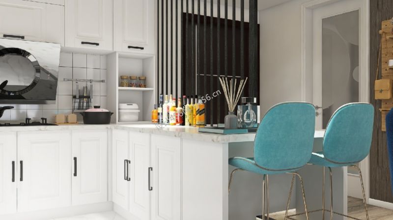 116平米现代简约风格三居室厨房吧台餐桌效果图