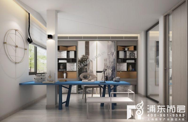 360平别墅新中式风格书房装修效果