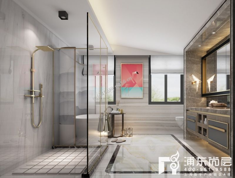 360平别墅新中式风格卫生间装修效果图