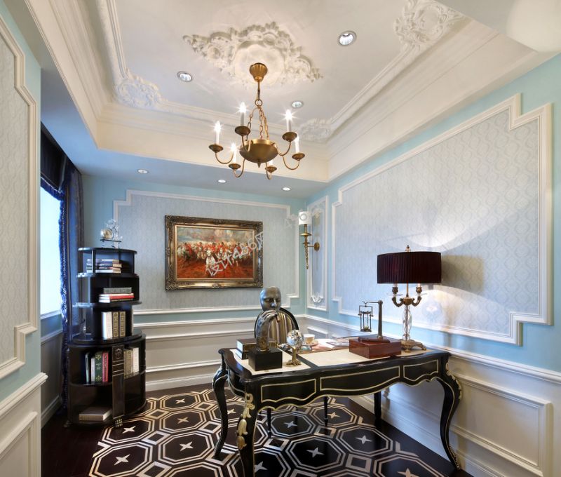 欧式风格190平米别墅书房书桌装修效果图