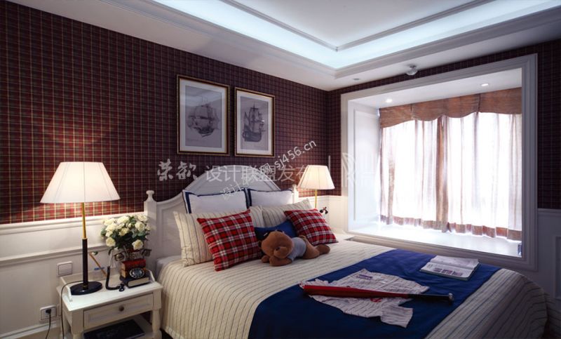 300平米别墅美式风格装儿童房墙纸装饰案例