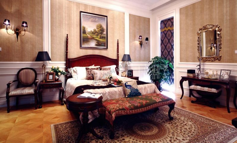 300平米别墅美式风格主卧室软装装修效果图