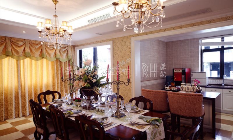 300平米别墅美式风格餐厅厨房一体装修案例