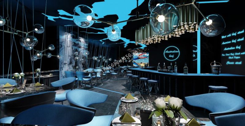 460平米轻奢风格澳洲牛排店吧台装修案例