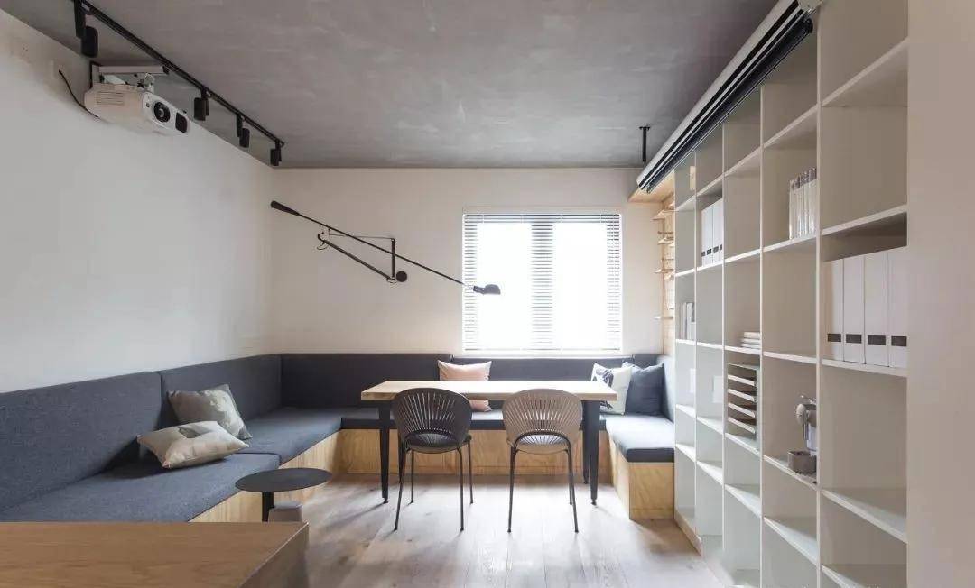 顺着墙打一排卡座,要是家里来很多客人,也不愁坐不下了,边角处理成弧形的避免磕碰,如果卡座你不喜欢的话,那么也可以改成定制柜,底部全都能用来收纳,增加不少的收纳空间。