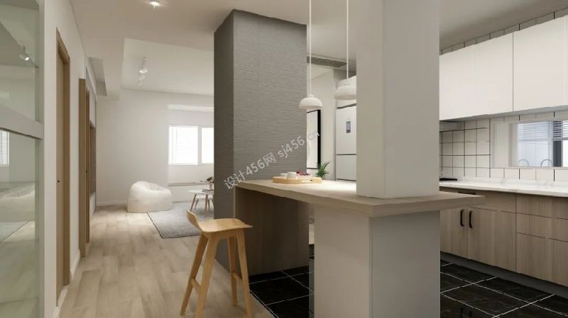 80平米简约风格二居室厨房吧台餐桌装修设计图