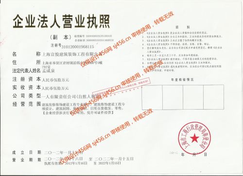 上海宣悦建筑装饰工程有限公司坚持以时尚、环保、节能、专业、诚信为标准的服务理念,率先提出“绿色空间——福荫后世”,唤起全社会对环保装修的认识,发起“追求绿色时尚,打造低碳生活”,“让绿色走进家园,让生命远离污染”的装修理念,倡导绿色环保节能先锋。长期以来,上海宣悦建筑装饰工程有限公司专业从事居室类装修、办公空间装修及店面装修,别墅及厂房的装修等,在办公、居室、店面类的装修工程中积累了丰富的的设计、施工经验。公司以时尚的精品设计,优质的工程质量,一流的售后服务,统一的管理,精心打造着“诚信”品牌。公司以实实在在的价格做好每一个工程项目。每一项工程我们都实施完整的质检制度及切实可行的工程保障。公司将继续凭借自身的实力,全力满足客户需求,致力打造优质的创意装饰品牌,成为上海地区质量求真、信誉最好的专业装修公司之一。立足科技、勇于创新、与社会各界提供优质服务,共创未来。 经营理念:质量第一、信誉至上、争创一流 质量方针:精益求精、保质保量、持续改善、服务客户 经营方针:满足客户、客户至上、价格合理、绿色环保 【承诺】以诚取信、以质求生,力做每一单都是样板房,欢迎来电。免费上门报价!!!合理的价格,过硬的质量,期待你的关注。欲了解更多内容,请与我们联系!