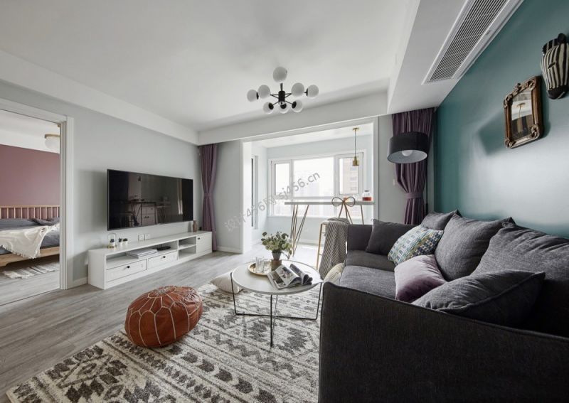 北欧风格110平米三居室客厅电视墙设计效果图