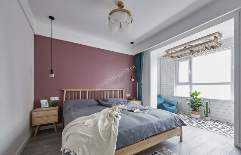 北欧风格110平米三居室卧室阳台设计效果图