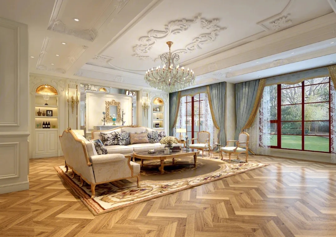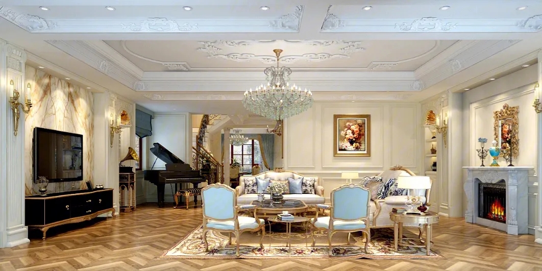 别墅装修时客厅也是很重要的一部分,也是我们别墅装修中最能体现整体效果的地方。设计时要严格把控好整体的布局和层高方面,墙面和灯光或者其他区域的处理一定要设计到位。