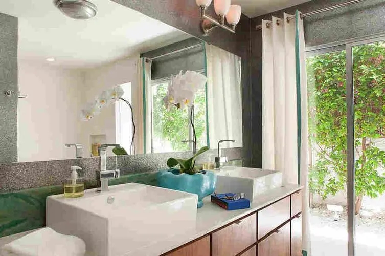 一般我们很少会注意到台盆上方的空间,在这个案例中就将台盆上方的空间给利用了起来,做成吊柜以收纳更多的东西。