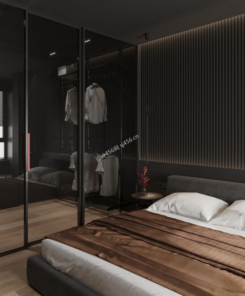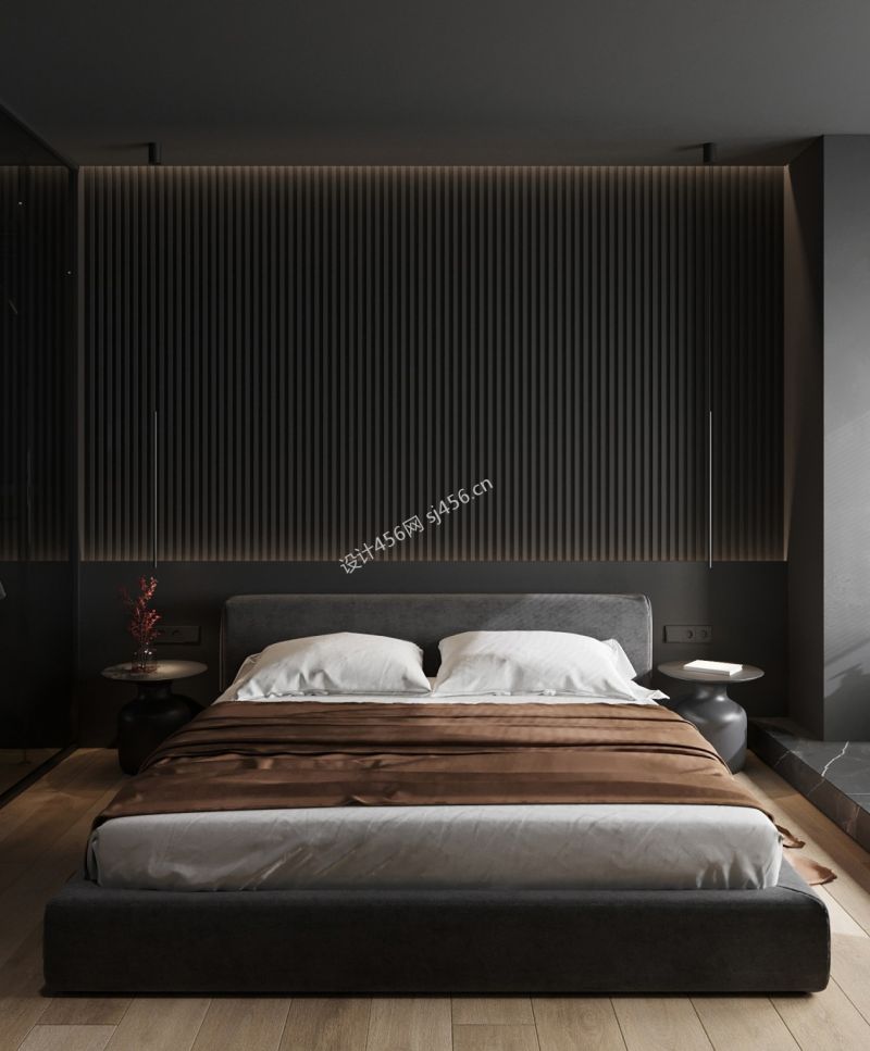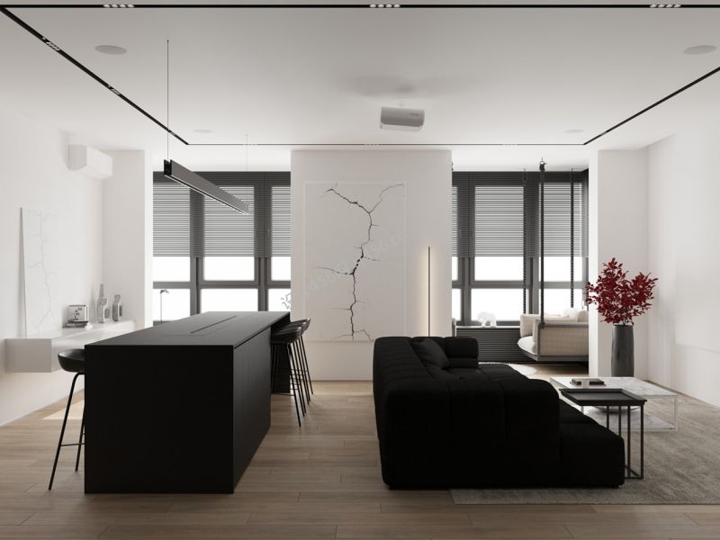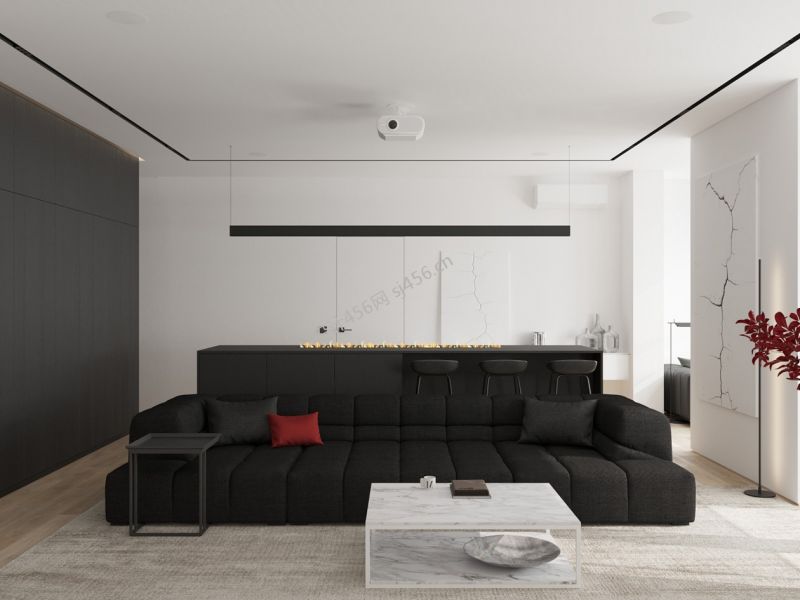 详情146平米大三居极简风格客厅黑色沙发装修案例