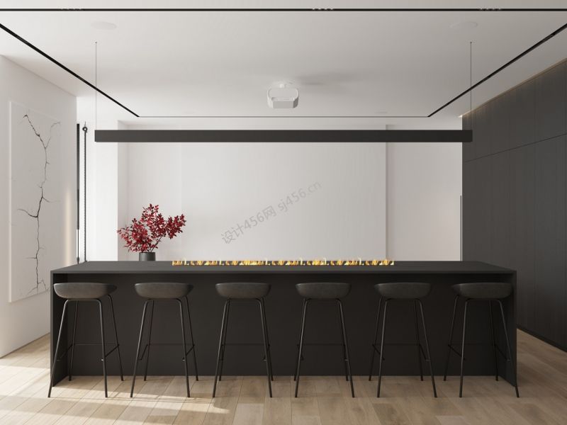 极简风格146平米大三居吧台餐桌椅装修设计图