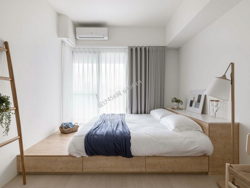 100平米二居室简约原木风格卧室榻榻米床设计图