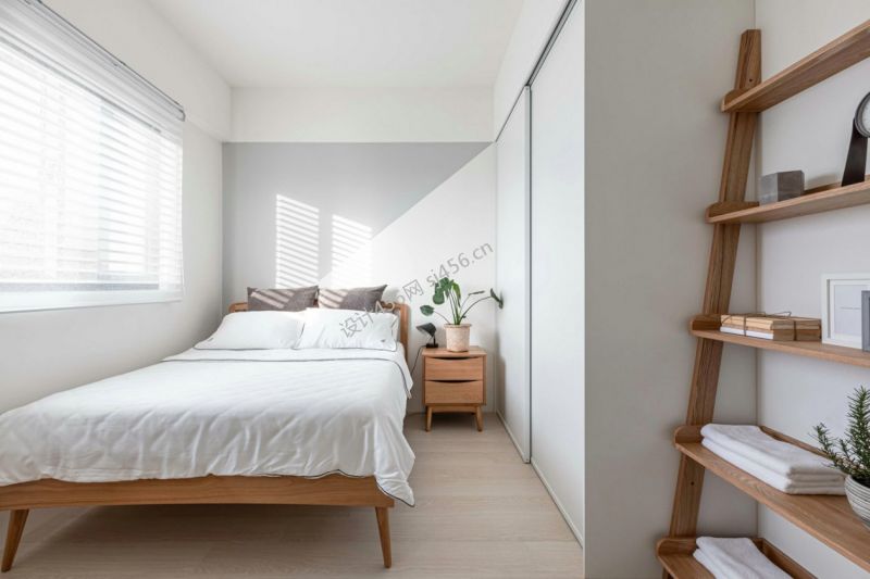 简约原木风格100平米二居室小卧室百叶窗实景图