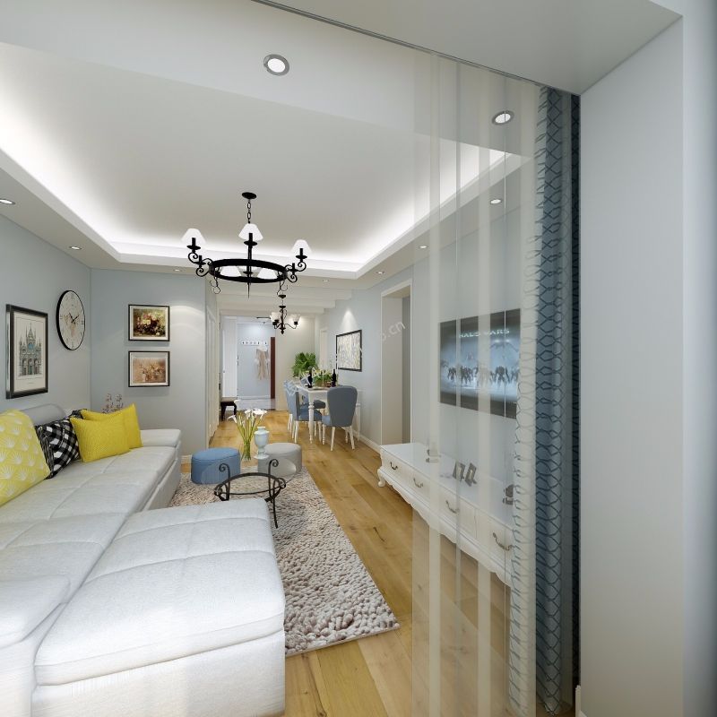 详情80平方米现代风格两居室客厅窗帘隔断装修案例