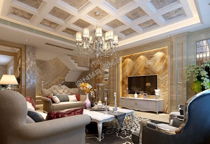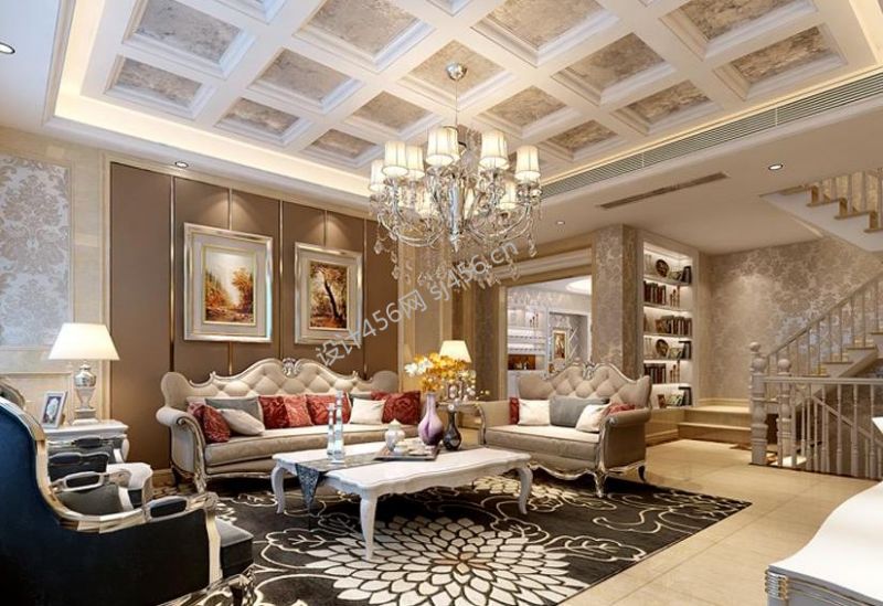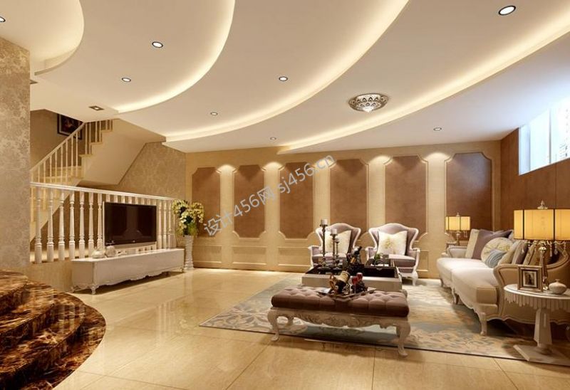 280平简欧风格别墅小客厅创意吊顶设计案例