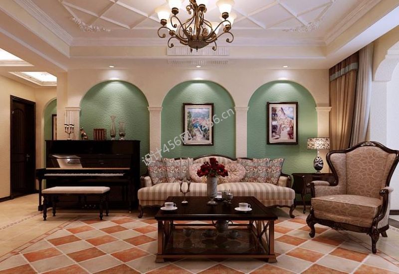 158平田园风格客厅沙发背景墙创意装修图片