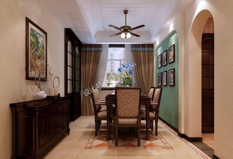 158平田园风格餐厅复古吊扇灯装修图片