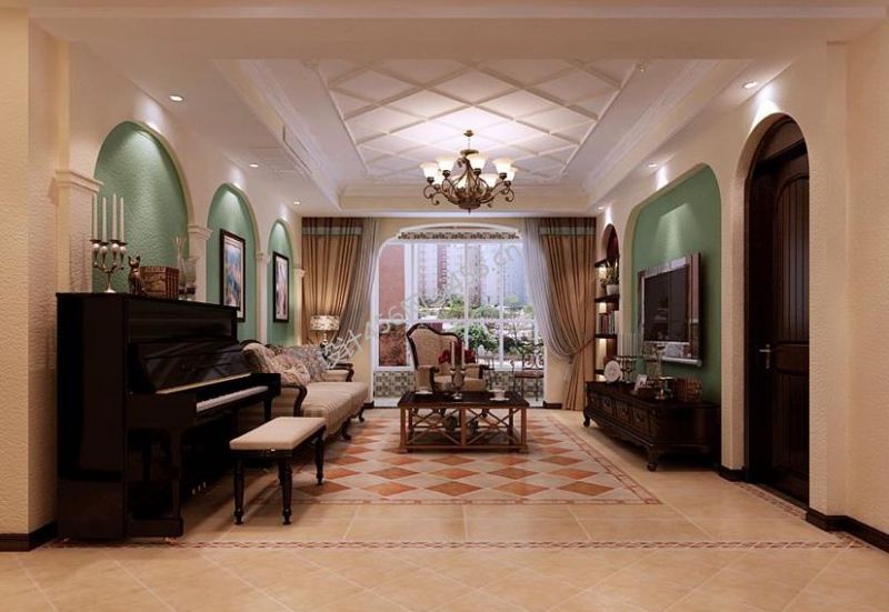 158平田园风格客厅石膏线吊顶装饰图片