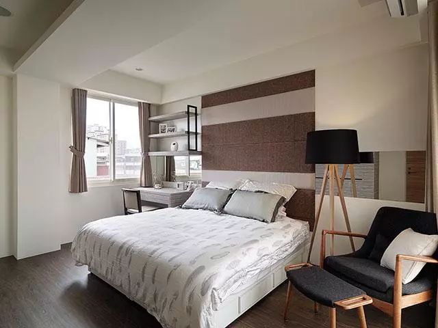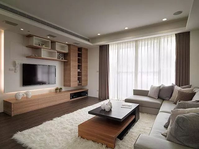 以前看过的现代风比较普通,而这次的设计不一样,多以木饰面和卡其色为主,虽然也简单,但是布局通透,简约干练。