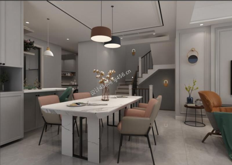 152平米叠墅北欧风格吧台设计装修效果图
