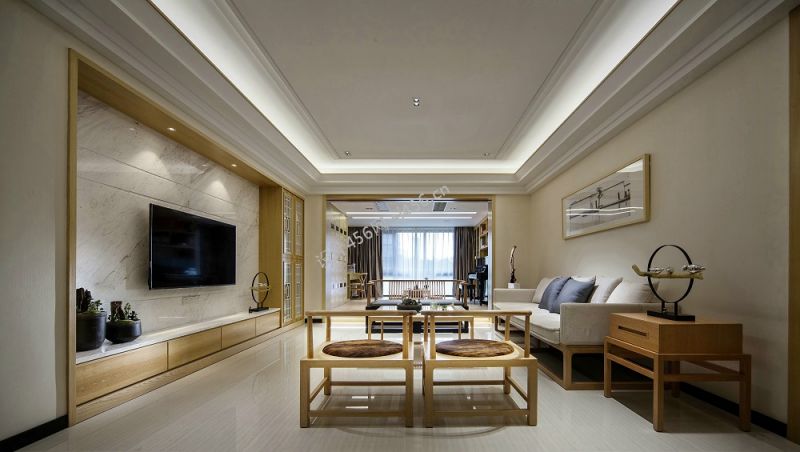 详情200平米中式风格别墅客厅电视墙装修效果图