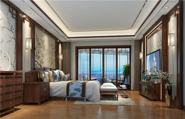 新中式别墅多选用木制的镂空或雕刻,讲究精雕细琢,宁静古朴,常见的样式有吊灯、台灯、落地灯、壁灯。