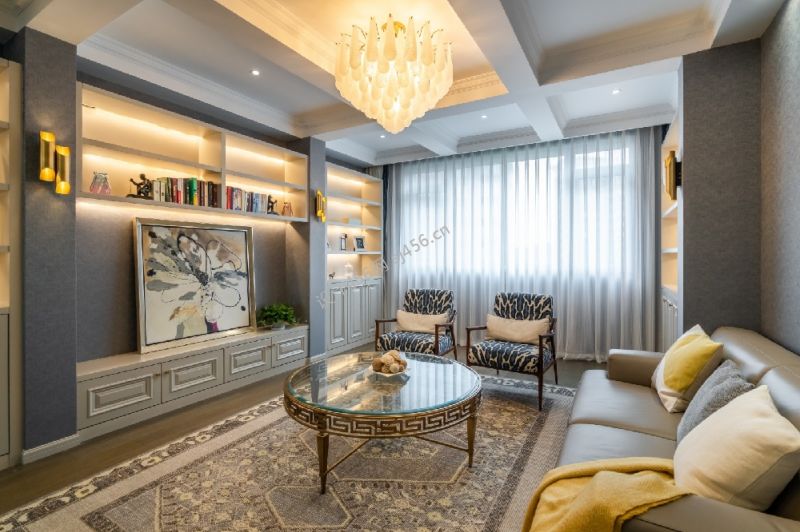 美式风格137平三室客厅背景墙装修效果图