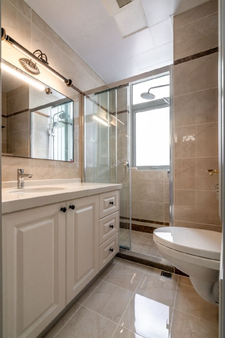 美式风格137平三室卫生间洗手台装修设计图
