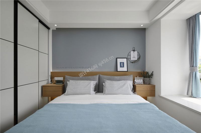 北欧风格90平米三室卧室床装修设计图