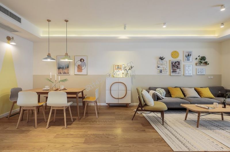 130平米现代简约三居室客餐厅一体装修案例