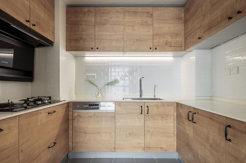 130平米三居室现代简约厨房实木橱柜设计图