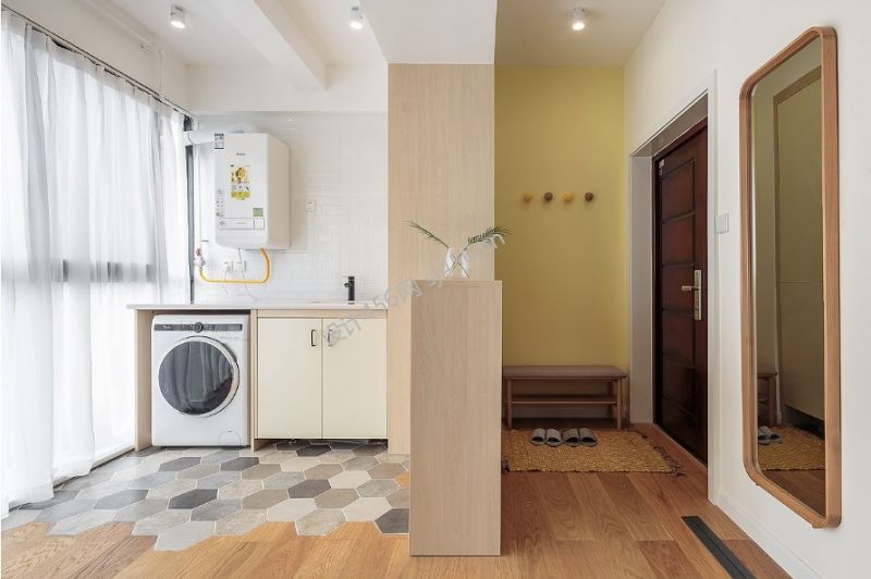 现代简约130平米三居室进门玄关隔断效果图