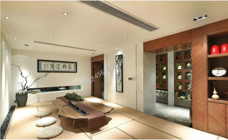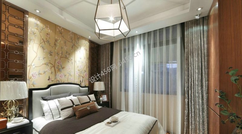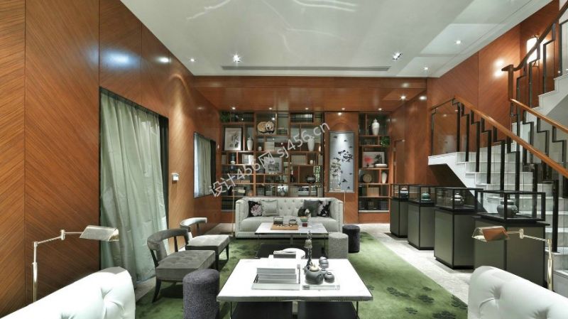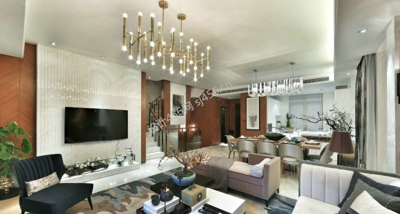 详情225平方米新中式风格别墅客厅背景墙装修案例